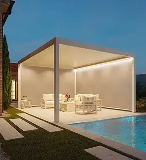IKON louvred roof canopies and pergolas provide protection from sun and rain